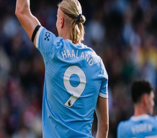 哈兰德晒出英超100球纪念球衣,这画质都快看不清哈兰德的脸了