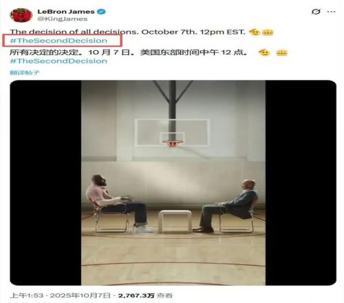 上一篇: NBA湖人球星詹姆斯发文:10月8日0点将公布“第二次决定”,引发退役和离队猜想