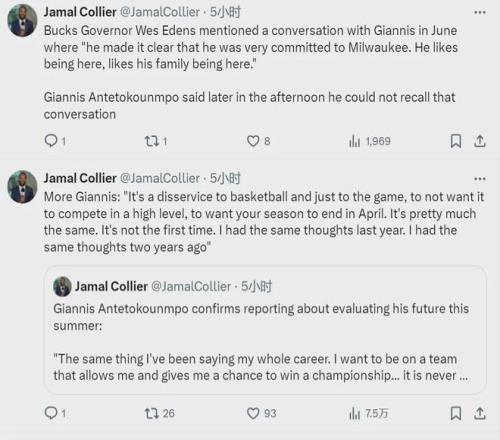 最后,字母哥还在采访中说了一句耐人寻味的话:“我整个生涯都在说同样的话,我希望在一支能让我赢得总冠军的球队效力,这一点永远不变!”
