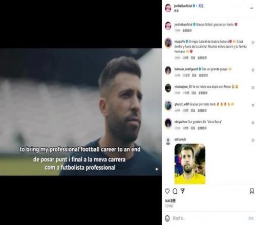 周二,效力于迈阿密国际的传奇巴萨边后卫阿尔巴通过社交媒体宣布将在赛季结束之后退役。在视频中,阿尔巴宣布了自己的决定,并且表示,“感谢足球”。