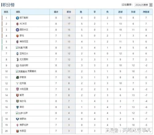 其他比赛中,乌迪内斯主场3-2击败莱切,帕尔马主场0-0战平科莫。