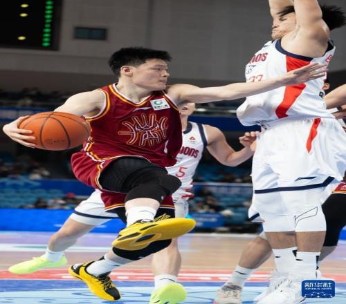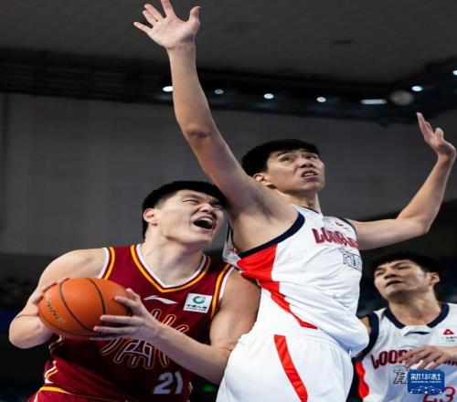 12月7日,山西汾酒队球员刘传兴(左)在比赛中进攻。新华社记者 肖艺九 摄