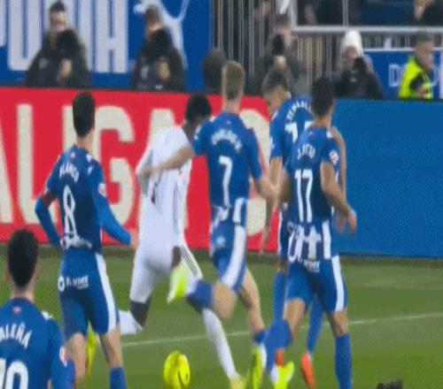 第68分钟,布兰科送出长传,比森特单刀劲射破门,VAR示意进球有效,阿拉维斯扳平比分,1-1!