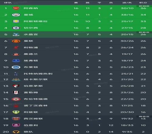 随着红魔44伯恩茅斯,英超第16轮结束所有比赛,最新积分榜如下