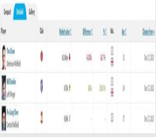 德转中超联赛中国香港球员身价榜