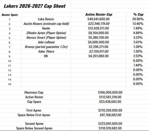 湖媒Tony Vega写道:2026年夏詹姆斯可以释放5950万的空间,八村垒则可以释放2730万的空间,如果湖人不再留用詹姆斯、八村,那么湖人在2026年夏就有足够的薪金空间来运作。