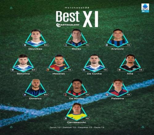 意甲第22轮最佳阵容:迪马尔科、德温特在列,科莫三人入选