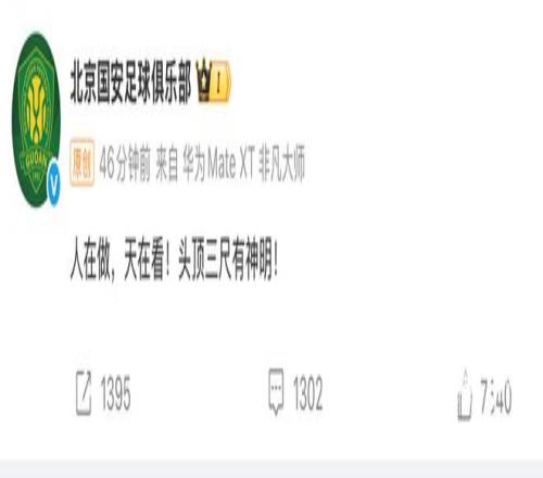 而上赛季足协杯冠军北京国安的“人在做天在看”,直接空降热搜第一。但大概一小时后,国安社交媒体删掉了这条回应。