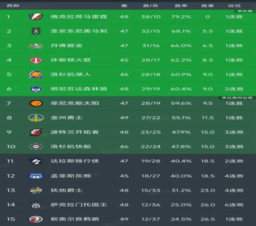 西部最新积分榜