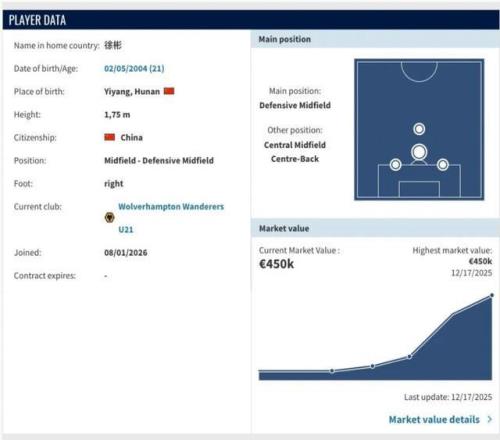 此次加盟狼队U21,标志着徐彬正式开启留洋生涯。据悉,为确保他获得稳定的比赛时间,狼队方面正积极评估将其外租至英冠或葡萄牙联赛的可能性。