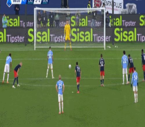 第90+10分钟,厄斯蒂高手球送点,卡塔尔迪主罚点球命中,拉齐奥3-2热那亚