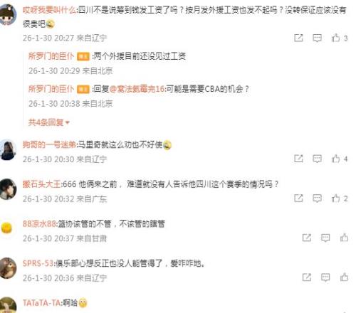 所罗门的臣仆还继续表示:“两个外援目前还没见过工资”,也是引发网友的一致吐槽。