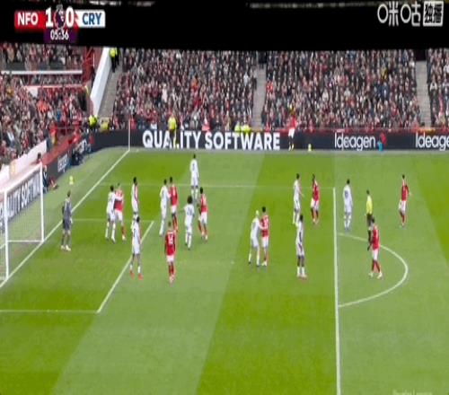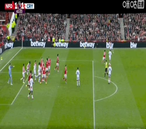 第5分钟,怀特乱战中推射近角破门,诺丁汉森林1-0领先水晶宫