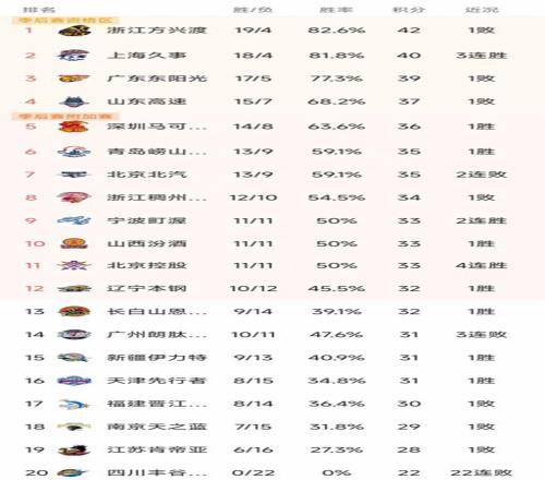 CBA排名一夜大变!吉林爆冷,广厦第4败,天津10196力克山东